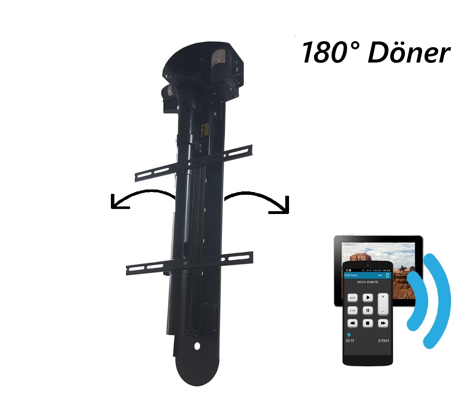 43" 55" 65" 75" 85" Elektrikli Tavan TV, Lift Asansörlü, Otomatik Aşagı Yukarı (Sağ -Sol) 180° Dönme Özelliği Kumandalı Ayarlı, TV Lift