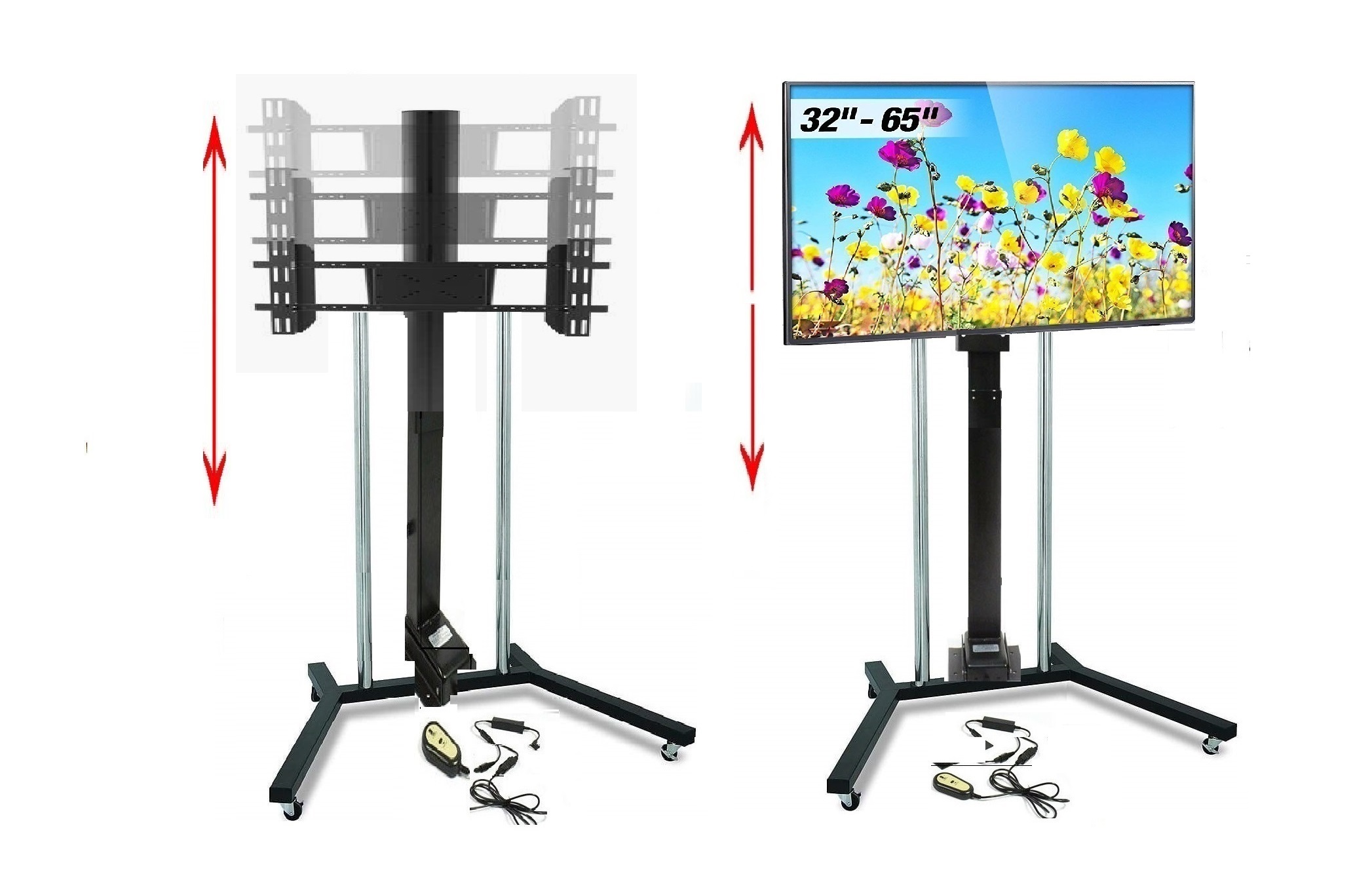 • 55" 65" 75" Seyyar Mobil Motorlu Tv Lift Asansör Uzaktan Kumandalı Montaj Braket Standı