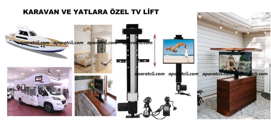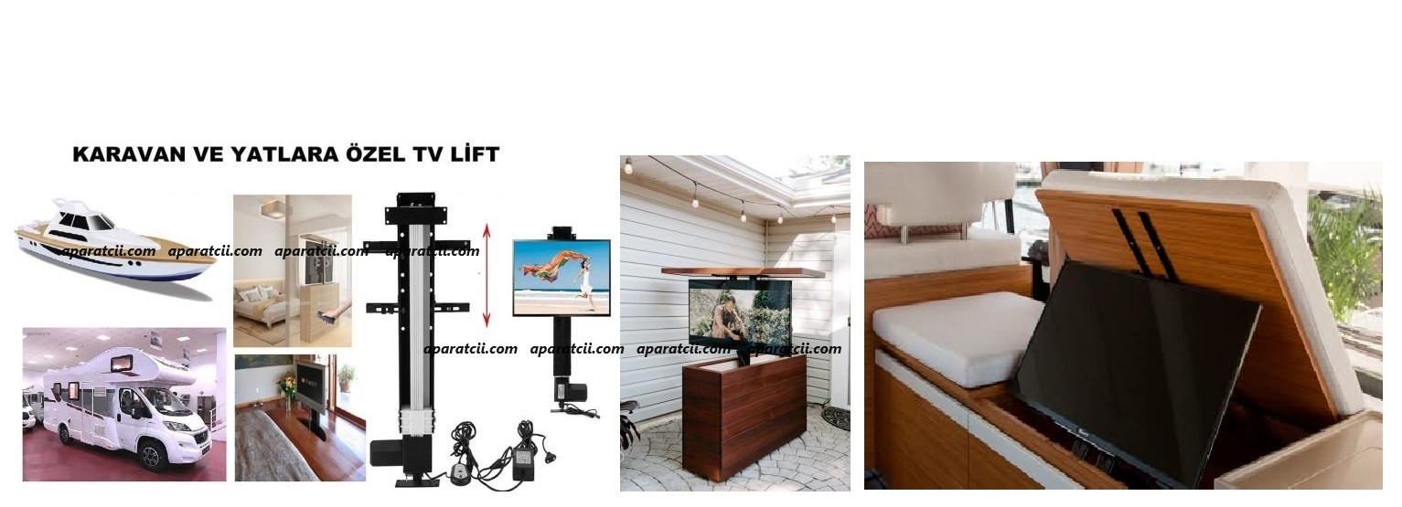 - 37" 43" 50" 55" 65" 75" 85" Arası Karavan Motor Yacht Elektrikli TV, Lift Asansörlü, Otomatik Kumandalı, Dolap Masa İçi Manuel Dönerli Gömme Lift